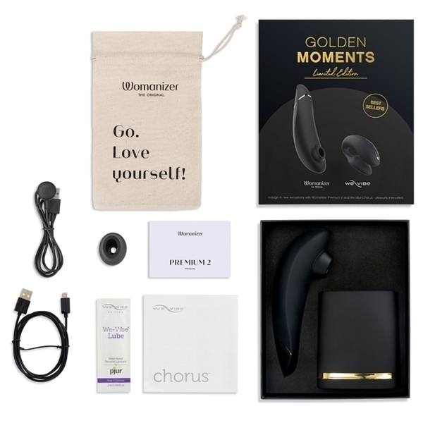 パイロット機能搭載で、吸引の強弱を自動でコントロールしてくれます。 ボタンを押さなくても当てるだけで自動で吸引ON/OFFしてくれる「タッチセンサー」機能も搭載。 We-VibeChorusは世界で一番売れているカップルバイブです。 ※こちらの商品は受注発注商品の為、ご注文から発送までに3、4営業日掛かる場合が御座います。 ![]() --![]() ゴールデンモーメントコレクション2![]() パッケージ:19.0×16.0×7.0cm 本体:ウーマナイザープレミアム(15.5×5.0×3.5cm)、We-Vibe Chorus(7.×3.3×最大直径 4.3cm) USB充電式![]() [ BACK ]