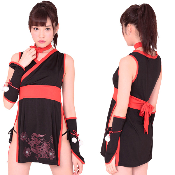 前下辺りには龍の模様がプリントされていて、カッコ良さバツグン!!横からチラッと見えるようなセクシーな見せパンも、Tバックでハツラツ! ![]() ブラック![]() A0323BK![]() 適応サイズ:B73〜88cm・W55〜66cm・H87〜93cm セット内容:帯・一体型ミニ着物・チョーカー・手甲・レッグウォーマー・見せパン(Tバック) ![]() [ BACK ]