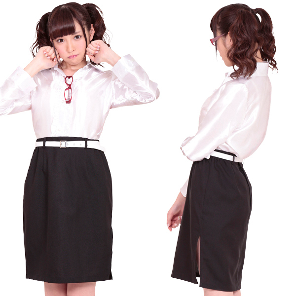 ![]() 憧れの美人教師に変身!ブラックのスカートに入ったスリットから覗く生足が、セクシーなコスチューム。