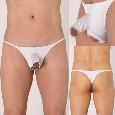![]() 大胆カットの露出デザインに釘付け!セクシーなメンズTバックショーツ(ホワイト)。