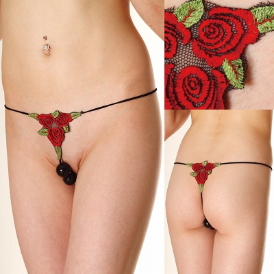 ![]() <EROX>大玉ビーズ付き!バラ刺繍のエロティックなパールショーツ。