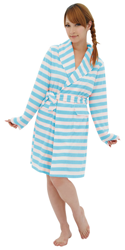 涼しげなアクアブルーのボーダー柄でキュートさをプラス!パッと着られるから、急な来客にも焦らず対応できちゃうよ!女子力UPに最適なアイテムです。 ![]() アクアブルー![]() KB0048SX![]() Mサイズ:B78〜88cm・W58〜70cm・H87〜95cm セット内容:ガウン(バスローブ) ![]() [ BACK ]