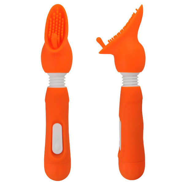 ヘッド部分に柔らかい無数の突起と、クリ用突起を配置!ネック部分が自在に曲がるので、女性器にぴったりとフィットします。 振動機能は、6パターンの可変バイブレーションを搭載!ソフトな振動ですので、初心者の方でも安心です。 生活防水仕様&ブラシ部分は取り外せるので、メンテナンスも簡単です。 単4電池×2本付属。 ![]() オレンジ![]() ハニームーン![]() パッケージサイズ:24.2×6.5×7.0cm 本体サイズ:20.0×3.0φcm ヘッド部分:7.5cm![]() [ BACK ]
