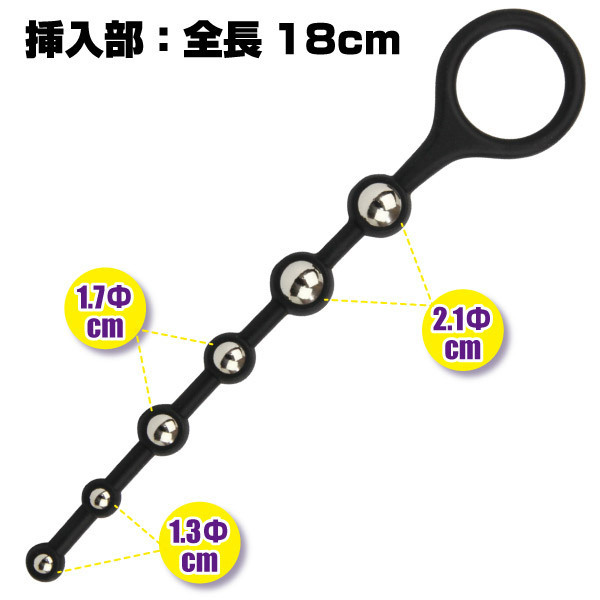 ![]() メタル特有のヒンヤリ感を堪能出来るアナルグッズ「カラフルピット メタルボール ロング」。
