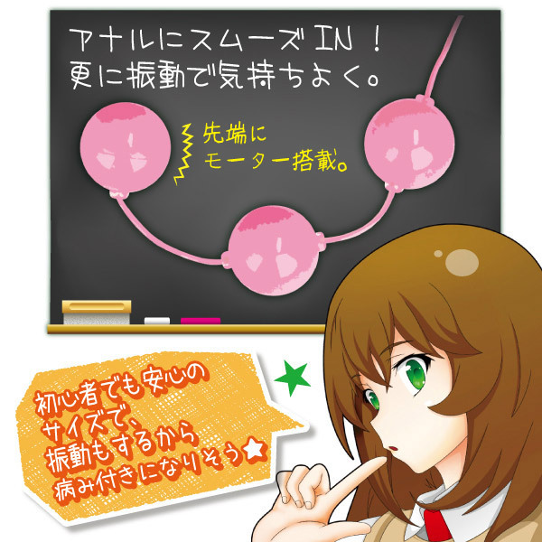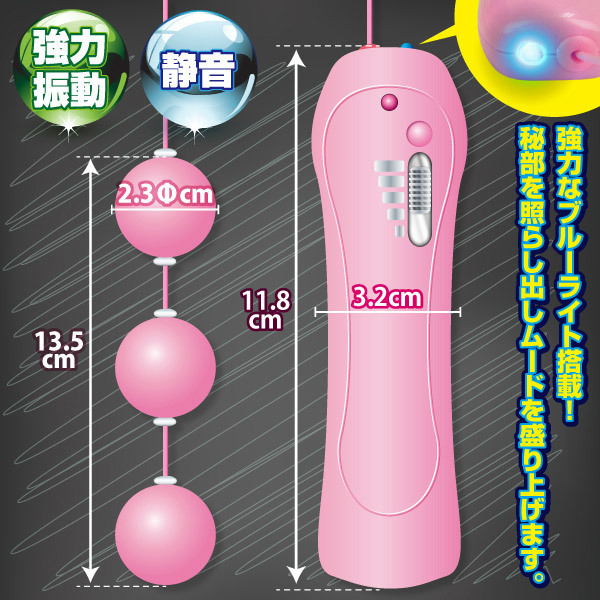 3つ並んだボールのうち、先端のボールだけにローターを搭載!3段階の強力振動がじんわりとした快感を伝えます。 また、操作部本体の先端にブルーLEDを搭載!秘部をイヤらしく照らしてくれるので、ムード作りもバッチリ!見て、使って、大満足できるアナル専用ローターです。 単四電池×3本付属。 ![]() --![]() アナルタイプ![]() パッケージ:12.1×7.6×3.2cm 本体:先端部13.5×2.3φcm・リモコン11.8×3.2cm![]() [ BACK ]