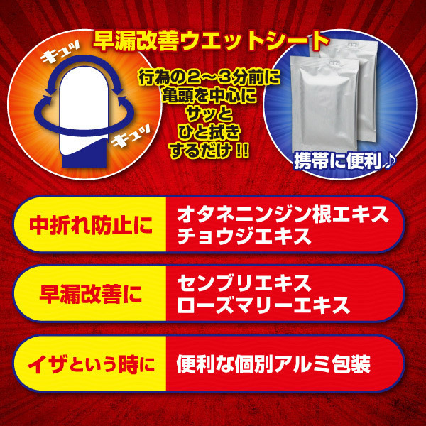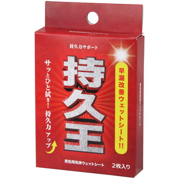 ![]() 早漏改善ウェットシート「持久王 2枚入りウェットシート」。