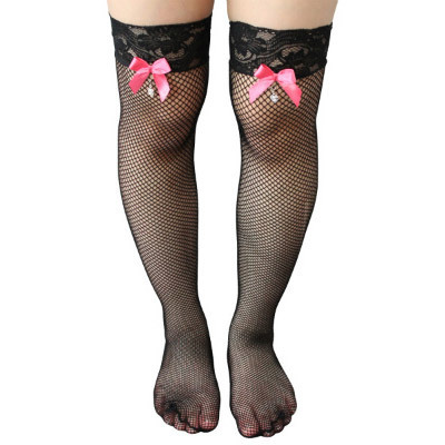 ![]() ピンクのリボンチャームが付いた大人可愛い網ストッキング。
