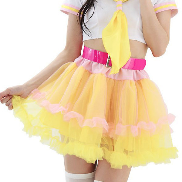 ![]() アイドル風コスチュームやセーラー服コスプレのお供に♪黄色×ピンクのキュートなカラフルパニエスカート。