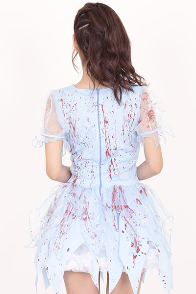 ●キュートな水色カラー●スカート部分はオシャレなカッティングデザイン●血しぶきが飛び散ったようなデザインが恐怖感を与えます。 画像のモデルさんみたいにメイクもバッチリ決めてみんなを驚かせちゃいましょう。 ※こちらの商品は受注発注商品の為、ご注文から発送まで2〜3営業日掛かる場合が御座います。 ![]() サックス![]() KZ0002SX![]() Mサイズ:B78〜88cm・W58〜70cm・H87〜95cm セット内容:ワンピース ![]() [ BACK ]