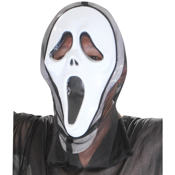 ![]() 黒いフードに白い顔…!戦慄のデスボイスが聞こえそうなスクリーム風フェイスマスク単品。