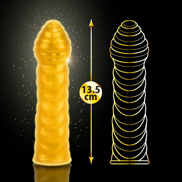 ![]() 神々しいペニスに大変身!金色に輝くゴージャスなオールカバーサック。