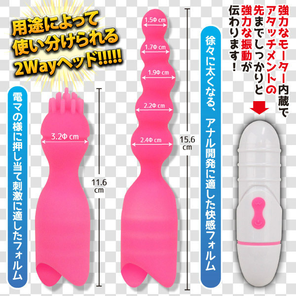 ![]() その日の気分によって使い分けできる2種類のアタッチメント付き!女性向けにつくられたピンクのアナルバイブレーター。