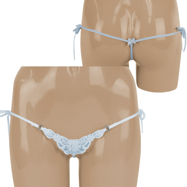 HOME > ランジェリー > オープン ブラ・ショーツ(穴あき) > 極小フロントレースサイドリボンGスト サックス