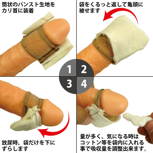 ![]() 尿漏れによるズボンへのシミ汚れを徹底的にガード!装着タイプの尿漏れ対策用ペニスカバー。