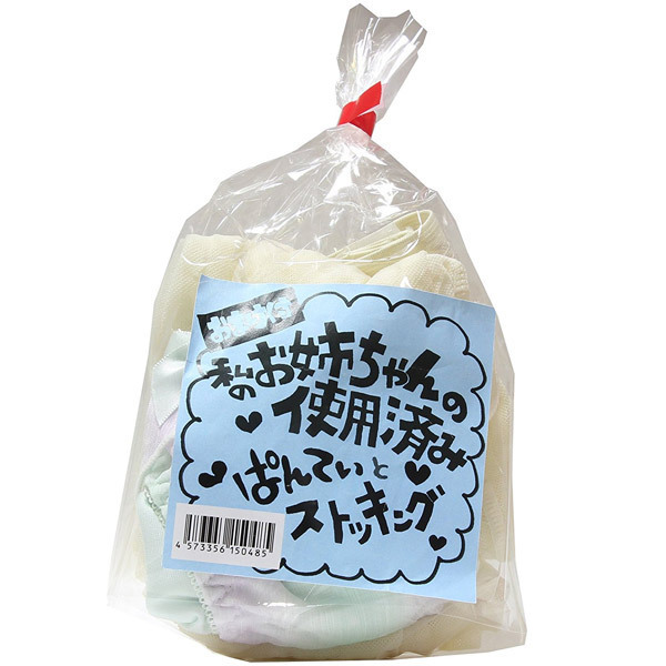 ●M心も疼く?お姉さんの使用済み●脱いだばかりのような生々しさ●ショーツ1枚+ストッキング1枚●ランダムチョイス&透明袋入り。 男のオナニーが俄然捗るお役立ちアイテム!思わずそっと鼻を近づけたくなるほどのリアルな空気がパッケージングされた使用済みランジェリー。 触ってよし、嗅いでよし、身に着けてよし!お気に入りドールのお着替え用にもどうぞ。 ※アソートとなりますので、色・柄・種類のご指定はできません ※USED加工を施した新品未使用品です ![]() --![]() パンティ+ストッキング![]() パッケージ:23.5×15.5cm![]() [ BACK ]