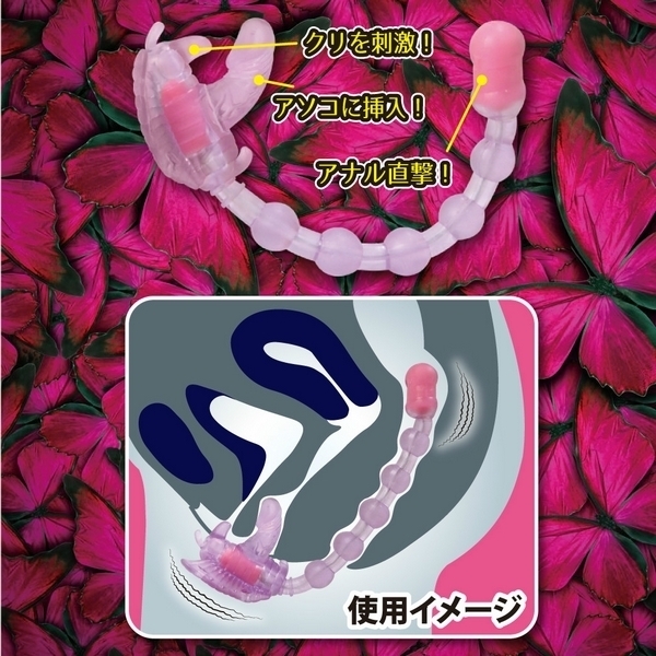 ●挿入したままベルトで固定可能●裏側の小突起でクリトリス責め●ペニス型の突起でヴァギナ責め●20cmのロングビーズでアナル責め●柔らかで丈夫なエラストマー素材●ヴァギナとアナル側に強力モーター●7種類の振動パターンを搭載。 前も後ろも強力悶絶刺激!奥深くまで響く快感振動のベルト装着型ローター。 バタフライのディルド部とアナルビーズ先端にダブルモーターを搭載!ゴム製ベルトでしっかりと固定できるので、装着したまま外出すれば屋外プレイもお楽しみ頂けます。 ![]() --![]() --