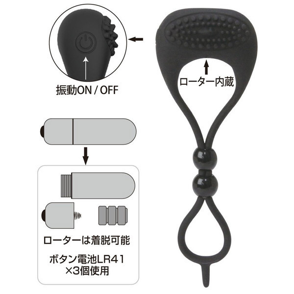 ●高品質シリコン素材のコックリング●2つのボールをスライドして調整●締め付けにより早漏防止をサポート●振動&ブラシでパートナーも刺激●ワンタッチ電源のシンプル振動搭載●ボタン電池LR41×3個付属●ローター部分は着脱可能。 ネクタイの様にキュッと締め付け!サイズを問わずに装着出来る男性用補助グッズ。 装着パターンによって締め付けるポイントを選択可能!ブラシ状の突起でパートナーへの刺激もしっかりサポートしてくれます。 ![]() --![]() バイブレーティングコックタイ![]() パッケージ:18.2×8.0×4.0cm 本体:14.0か×4.8×2.3cm 電池:LR41×3個使用![]() [ BACK ]