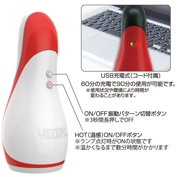 ●イラマチオ系の電動オナホール。 ●ヒート機能で口内の温もりを再現。 ●凹凸のないツルンと滑らか構造。 ●喉奥が締まるディープスロート感。 ●12パターンの振動機能を搭載。 ●奥まで挿れた際の咽喉の震えも再現。 ●亀頭&カリをダイレクトに刺激。 ●USB充電コード、5mlローション付属。 亀頭派の方におすすめ!グローバルなセックストイブランド「YOUCUPS」のホットに感じるフェラチオホール。 「エレクトリック ディープ」は内部を敢えてシンプルにしたことで密着感が高まり、ダイレクトに刺激と温もりが伝わる快感構造になっています。 ![]() --![]() ホット![]() パッケージ:17.8×8.0×8.0cm 本体:17.7×7.6cm 挿入口:4.3cm USB充電式![]() [ BACK ]