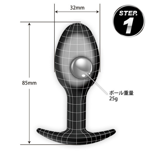 ●全長8.5cm×最大径3.2φcm●シリーズ最小ボディの「STEP1」●ストッパー付きのプラグ形状●安心安全な高品質シリコン素材●重さ25gのメタルボールを1個内蔵●自在に動いて存在感をアピール。 アナル開発や日常装着用に♪コンッコンッとノックするような刺激を楽しめるメタルボール入りアナルプラグ。 シリーズ最小ボディの「STEP1」はアナル入門者に最適なサイズです。 ![]() --![]() スペシャルアナルプラグ STEP 1![]() パッケージ:14.0×8.0×4.0cm 本体:8.5×3.2cm![]() [ BACK ]