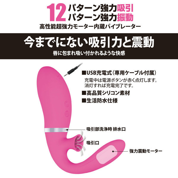 クリ吸引グッズとGスポットバイブが合体!ありそうでなかったF字型バイブレーター。 セルフプレイに最適なF型フォルムで驚きのフィット感を体感!肌触り抜群の高品質シリコンボディは全長10cm、最大径は3cm。 挿入部ヘッドに内蔵された高性能モーターがGスポットを刺激。 さらに、唇に吸い付かれるような刺激を生み出す吸引機能を搭載!強力な12パターンの吸引&振動を味わえます。 フル充電約90分で連続稼働約50分のUSB充電式(専用ケーブル付属)。 クリ吸引部洗浄用の排水口が配置された生活防水仕様!内部までしっかり洗えるので衛生的です。 ![]() --![]() バキュームサッキングバイブレーターF![]() パッケージ:26.5×15.0×6.3cm 本体:10.0×3.0cm 吸引部直径2.1cm USB充電式![]() [ BACK ]