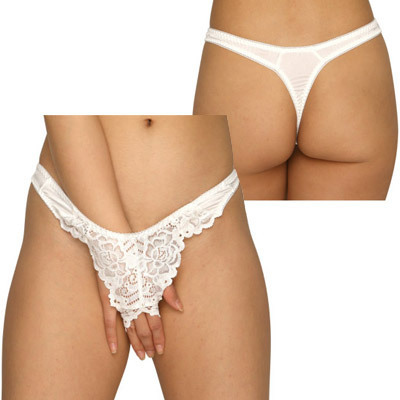 HOME > ランジェリー > オープン ブラ・ショーツ(穴あき) > トリコット&レース生地オープンクロッチTバック ホワイト