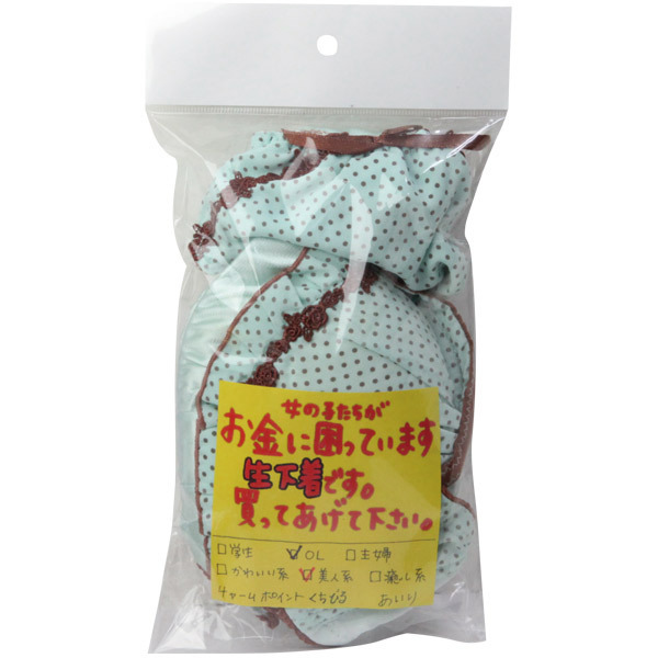 HOME > 特殊アイテム > マニア向け > 買ってあげて下さい (生ブラ&パンティー上下セット)