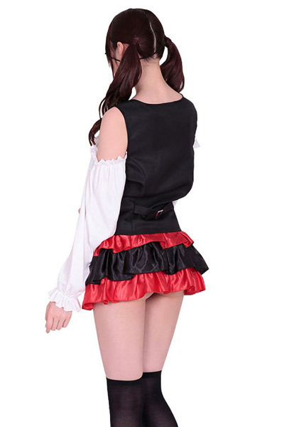 オフショルダーブラウス付きのベストと、黒×赤カラーの光沢ティアードフリルスカートのセット!眼帯&スカーフ帽の小物も付属した充実セットのパイレーツ衣装です。 眼帯付きのコスプレをするならせひどうぞ! ![]() ブラック![]() A0654BK![]() Mサイズ:B78〜88cm・W58〜70cm・H87〜95cm セット内容:ブラウス付ベスト、フリルスカート、眼帯、スカーフ帽 ![]() [ BACK ]