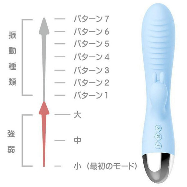 触り心地の良いシリコン素材のボディは、なめらかで挿入しやすくグッズ入門者にもオススメです。 ヒダを刻んだ本体の先端とウサギの耳をイメージしたクリバイブそれぞれに、パワフルな高性能モーターを内蔵!静音設計で周囲を気にせず使えます。 振動パターンは10種類、直感的に操作できるシンプルな設計。 充電USBコネクタが本体に内蔵された便利なUSB充電式タイプ!約2時間のフル充電で約1時間稼働します。 ![]() MilkyBlue![]() --