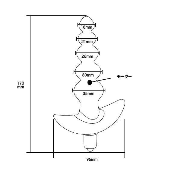 サラサラとしたマットな肌触りのブラックシリコンボディ!徐々に大きくなるポコポコとしたボールが抜かれるたびに括約筋を刺激!パワフルモーターの振動と合わさり、深い快感をお楽しみいただけます。 振動パターンは16種類、雰囲気を妨げない静音設計、ローター部分は着脱可能。 生活防水仕様で衛生的にお使い頂ける電動アナルグッズです。 単四電池×1本付属(動作確認用)。 ![]() --![]() Saint![]() パッケージ:17.5×11.5×6.0cm 本体:全長17.0cm 挿入部直径1.8〜3.5cm ローター9.5×1.7cm 重量:122g 電池:単四電池×1本使用![]() [ BACK ]