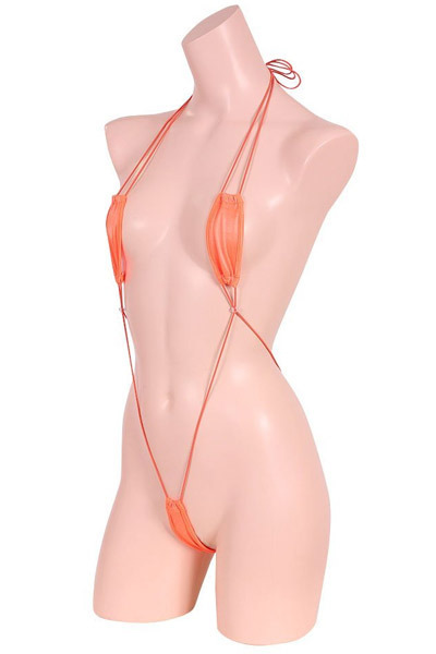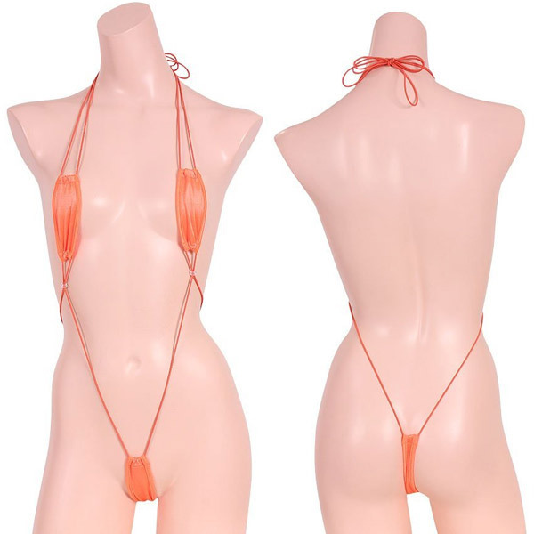 ![]() ギリギリ隠れる極小の縦長生地がセクシー!光沢感のあるサラっとしたストレッチ生地のサスペンダーテディ「極小光沢ストレッチプレイスーツ オレンジ」。