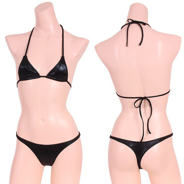 ![]() 超セクシーなメタリックビキニで悩殺!光沢素材が魅力のブラ&ショーツセット「メタリック三角ビキニペア ブラック」。