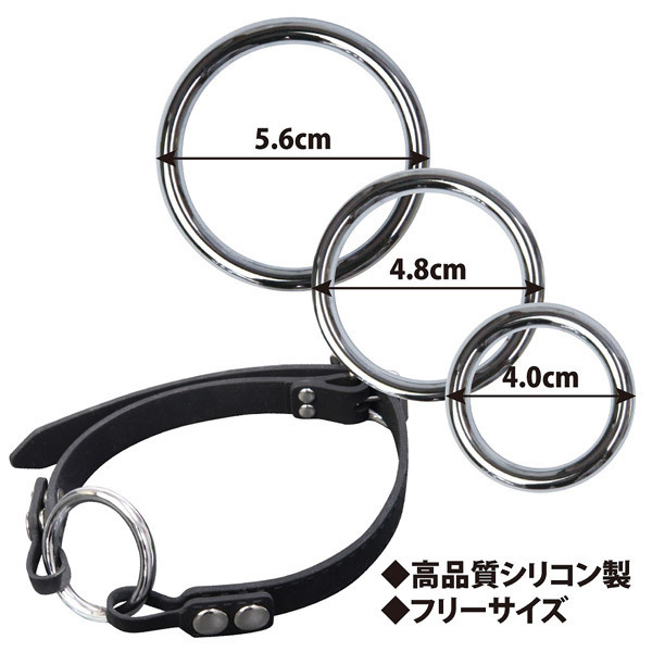 ![]() 大、中、小とサイズの異なるメタルリングがセット!より幅広いプレイが楽しめるシリコン製のSM用口枷「シリコンマウスギャグ Oリング3サイズセット」。