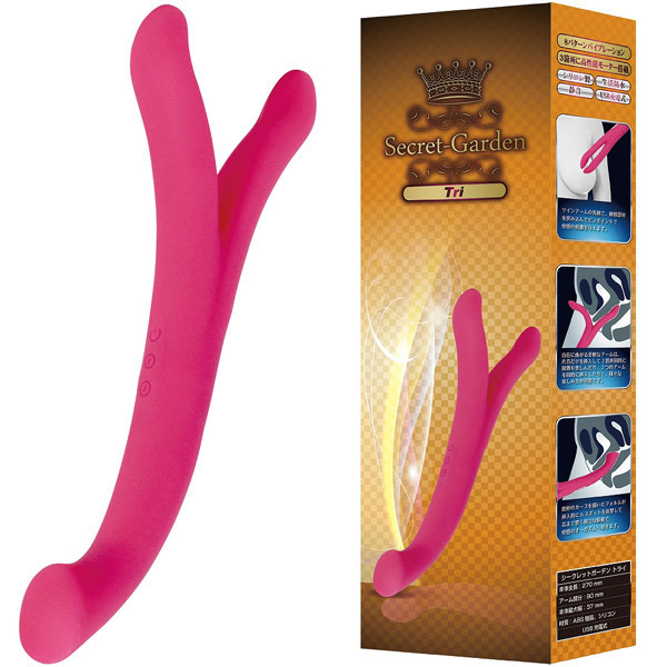![]() 3分間以内のアクメ率なんと92%の瞬間絶頂!挟み込み&挿入どちらも楽しめるツインアームの双頭バイブ「シークレットガーデン トライ」。
