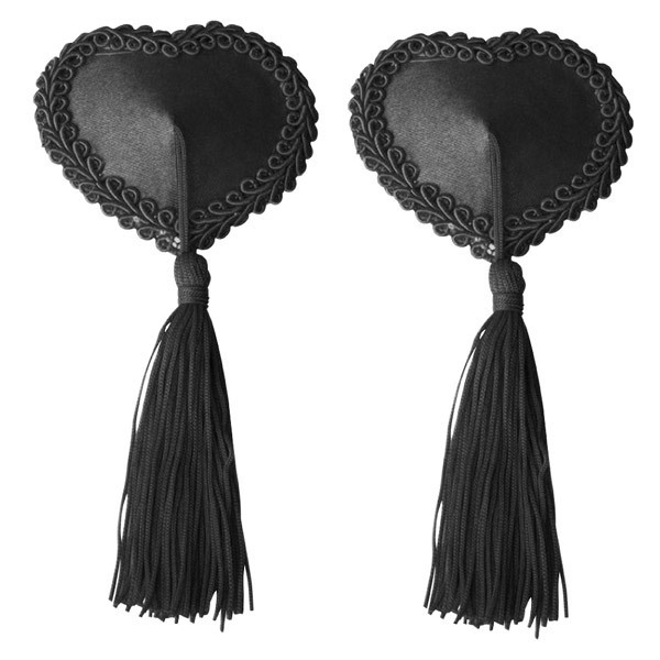 HOME > コスプレ衣装 > 小道具(ニーソックス・猫耳) > ニップルタッセル (フリルサテンハート) 黒
