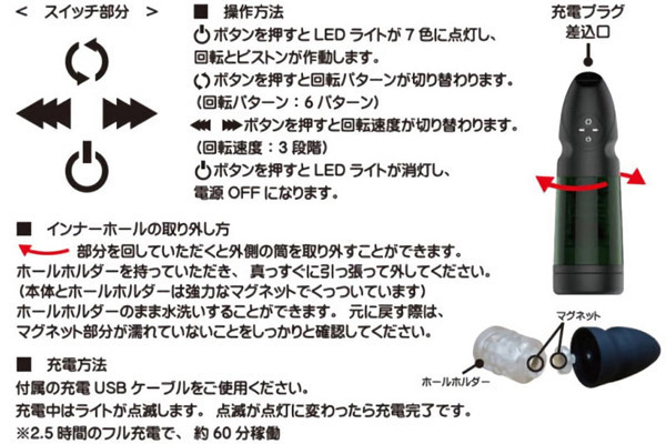 ![]() 片手で持ちやすい簡単操作の電動ホール「オーロラカップ」が登場しました!こちらの商品は「6種類の回転パターン」と「3段階の回転スピード」の切替ができるのが特徴で、内部のホールが上下にピストンすることでパワフルな高刺激を与えてくれるほか、使用中はムードに合わせてLEDがカラフルに点滅することで、他にはない新鮮さを味わわせてくれます。
