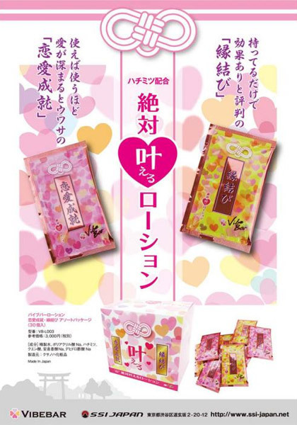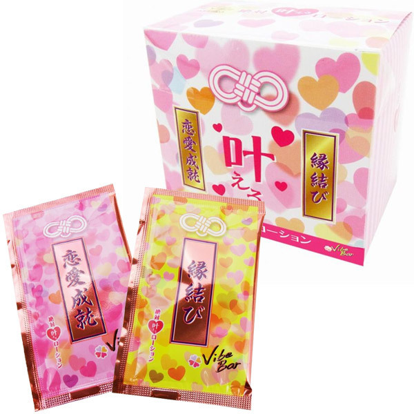 ![]() 見た目がまるでお守りのようなパッケージなので、恋愛成就のペアグッズとして持ち歩いてもよし!キラキラ光る愛らしいポケットローション「バイブバーローション 恋愛成就・縁結び アソートパッケージ」です。