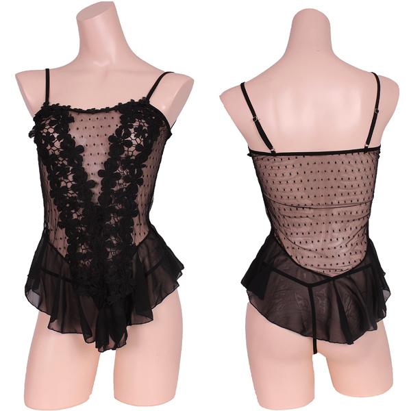 HOME > ランジェリー > ベビードール > フリルとレースで可愛さ増しベビードール&Tバックセット ブラック