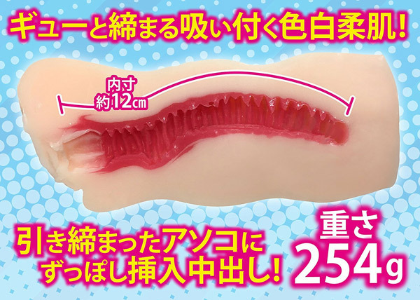 ![]() 引き締まった女子大生チアガールのアソコを再現した生中出し感覚を楽しめるオナホールです!チアリーディングで鍛えたボディをイメージさせる美肌ボディは、抜群のさわり心地でウェーブが入っているので握りやすくストロークの際に疲れを感じさせません♪外観は、むっちりとした白い柔肌の美肌ボディで内部は、赤く色づいた膣内となっており、ギュンギュン絡みつく極上ヒダ名器を再現しています。