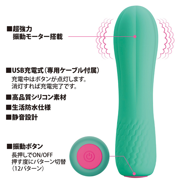 サボテンのような見た目が特徴的なコチラは全長11.6cm、太さ3.1cmの小型タイプながら、なんと12種もの振動パターンと一気に絶頂へと導く強力振動を搭載!出先でも気持ち良くなりたいなんて時には、鞄や車からサッと取り出して楽しめるのもこのコンパクトなシリコンバイブレーターの持ち味。 クリや乳首への押し当て刺激や、挿入してのGスポット責めなどにも最適ですよ♪生活防水搭載、専用コードが付属しています。 ![]() ターコイズ![]() シリコンミニバイブレーター ターコイズ![]() パッケージ:15.0×8.0×4.0cm 本体:11.6×3.1cm USB充電式![]() [ BACK ]