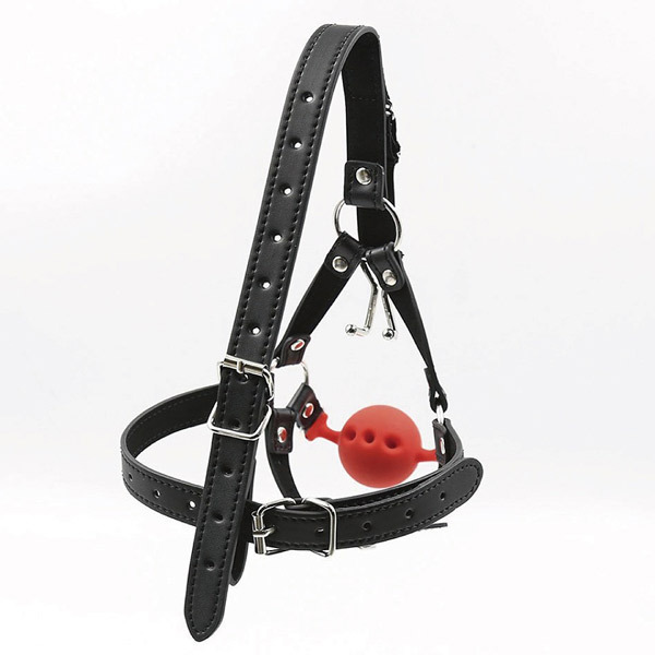 HOME > SMグッズ・拘束具 > 猿轡(さるぐつわ) > <SM VIP>鼻フックボールギャグハーネス (赤)