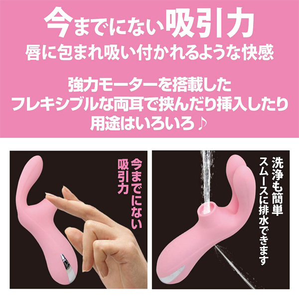 今までにない吸引力!唇に包まれ吸い付かれるような快感。 強力モーターを搭載した、フレキシブルな両耳で「挟んだり」「挿入したり」用途はいろいろ♪●7パターン振動●7パターン吸引●高品質シリコン素材●生活防水●静音設計●専用USB充電コード付属、充電時間:60分、 連続稼働時間:40分 ![]() --![]() バキュームサッキングラビット![]() パッケージ:24.0×8.7×5.2cm 本体:17.0×7.5cm・吸引部径1.7cm USB充電式![]() [ BACK ]