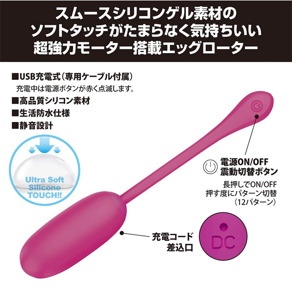 ![]() 側はサラッとしたシリコン、内側は柔らかなスムースシリコンゲル素材を使用した、ソフトタッチがたまらなく気持ちいい超強力モーター搭載エッグローター!柔らかな優しい挿入感、しかし震動は超強力でGスポットへと快感が響き渡ります。