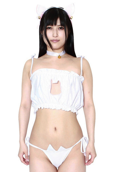 胸元を猫マークにくり抜いたふんわりシフォンのトップスと、いたるところに可愛らしいネコモチーフを取り入れた紐パンツ、そして鈴付きの猫耳カチューシャの3点セット!エロと可愛さを両立させたとってもキュートなキャットガールコスチュームです。 ![]() ホワイト![]() ec013WHT![]() Mサイズ:B78〜88cm・W58〜70cm・H87〜95cm パッケージ:31.0×21.5×2.5cm セット内容:トップス、紐パンツ、耳カチューシャ 素材:ポリエステル95%、ポリウレタン5% ![]() [ BACK ]
