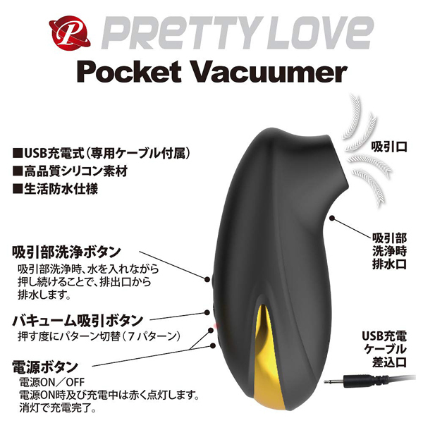 ポケットサイズに超強力な快感吸引を実現!●7パターン吸引●高品質シリコン素材●生活防水●静音設計●専用USB充電コード付属、充電時間:120分、連続稼働時間:60分 ![]() --![]() ポケットバキューマー![]() パッケージ:13.0×10.1×5.2cm 本体:10.5×3.8cm USB充電式![]() [ BACK ]