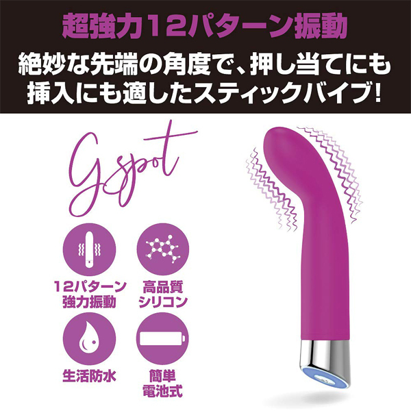 絶妙な先端の角度でGスポットを押し上げ、快感震動が直撃!滑らかで優しい質感のシリコンボディは押し当てにも適してます♪●12パターン強力震動●高品質シリコン●生活防水●電池別売 ![]() --![]() イージースティックGスポットバイブレーター![]() パッケージ:17.5×9.0×4.5cm 本体::15.0×2.7cm 電池:単三電池×1本使用![]() [ BACK ]