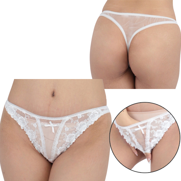 HOME > ランジェリー > オープン ブラ・ショーツ(穴あき) > 極薄シースルー&レースオープンTバック ホワイト