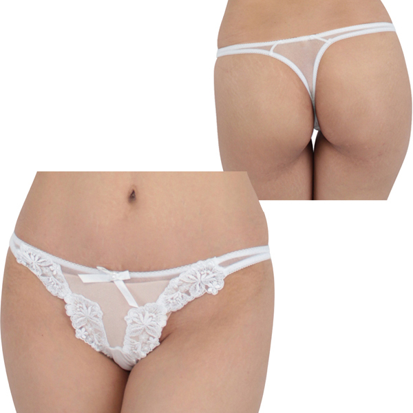 ![]() 透け感のあるシースルー生地とエレガントな花柄レースで装飾された日本製Tバック。