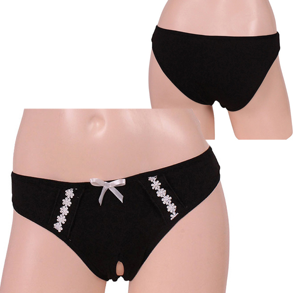 ![]() ピュアそうに見えて実は小悪魔!アダルトな仕掛けにドキッとする穴あき仕様のフルバック♪クロッチ部分に切れ込みが入った黒のフルバックに、リボンと小ぶりな花の刺繍を飾り可愛さをプラスした小悪魔女性のためのフルバックです。