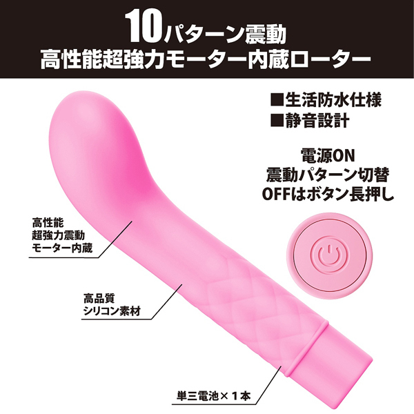 ![]() 高性能な超強力モーターを搭載!女性の気持ちいいを追求する「プリティラブ」シリーズよりGスポ責めに特化した電池式スティックバイブ(ピンク)。