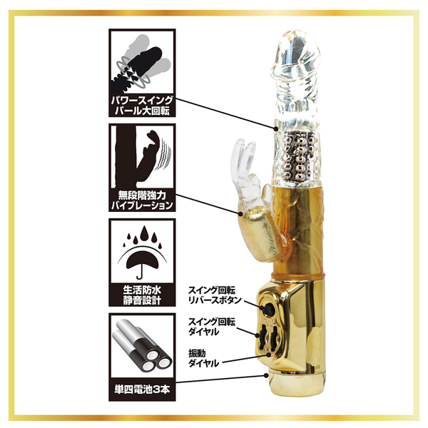 ![]() 高級感のある見た目と強力スウィング&振動に圧倒される!クリスタル×ゴールドの子機付きバイブ。